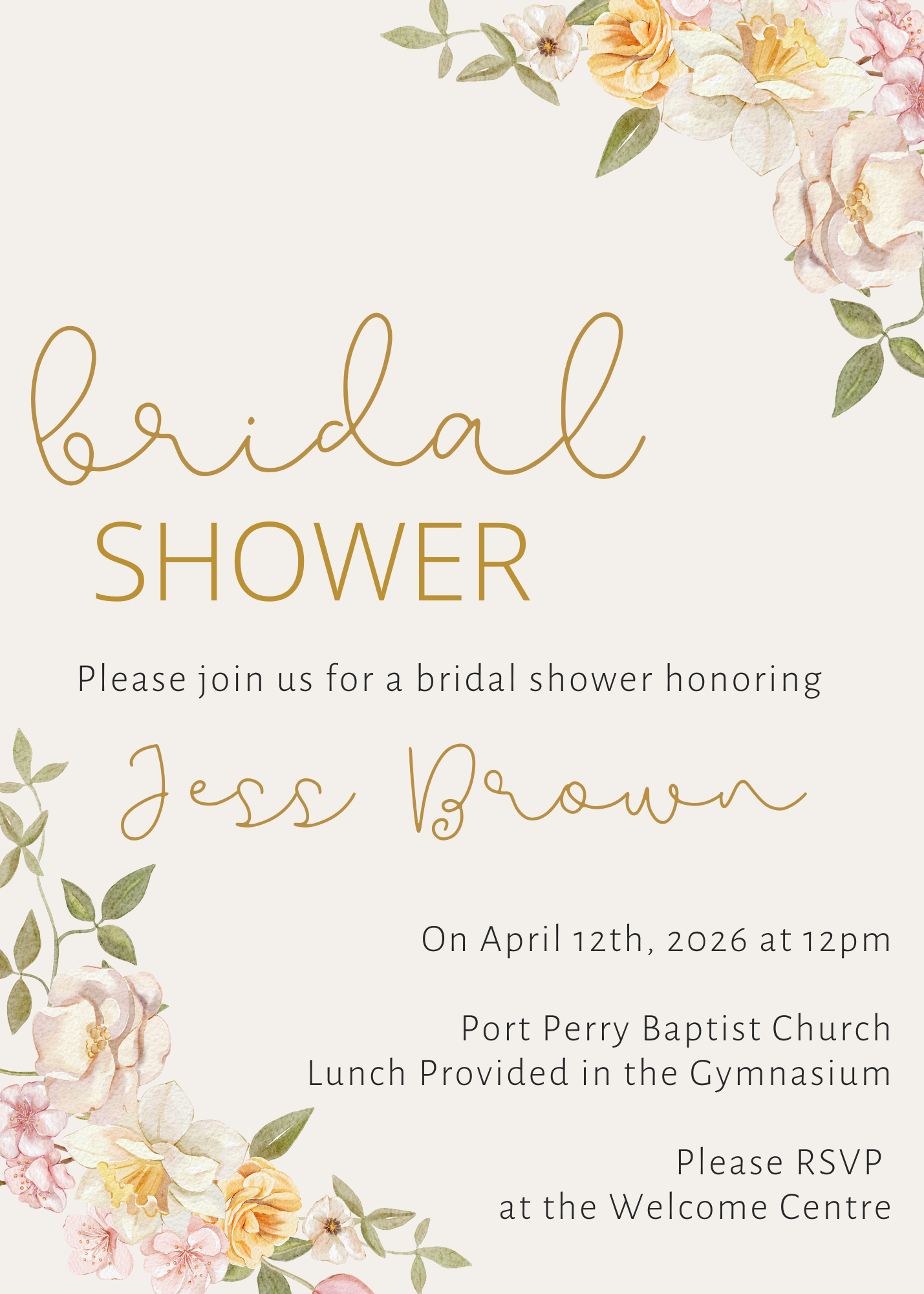 Ladies, please join us for a shower celebrating on Sunday, April 12th, 2026